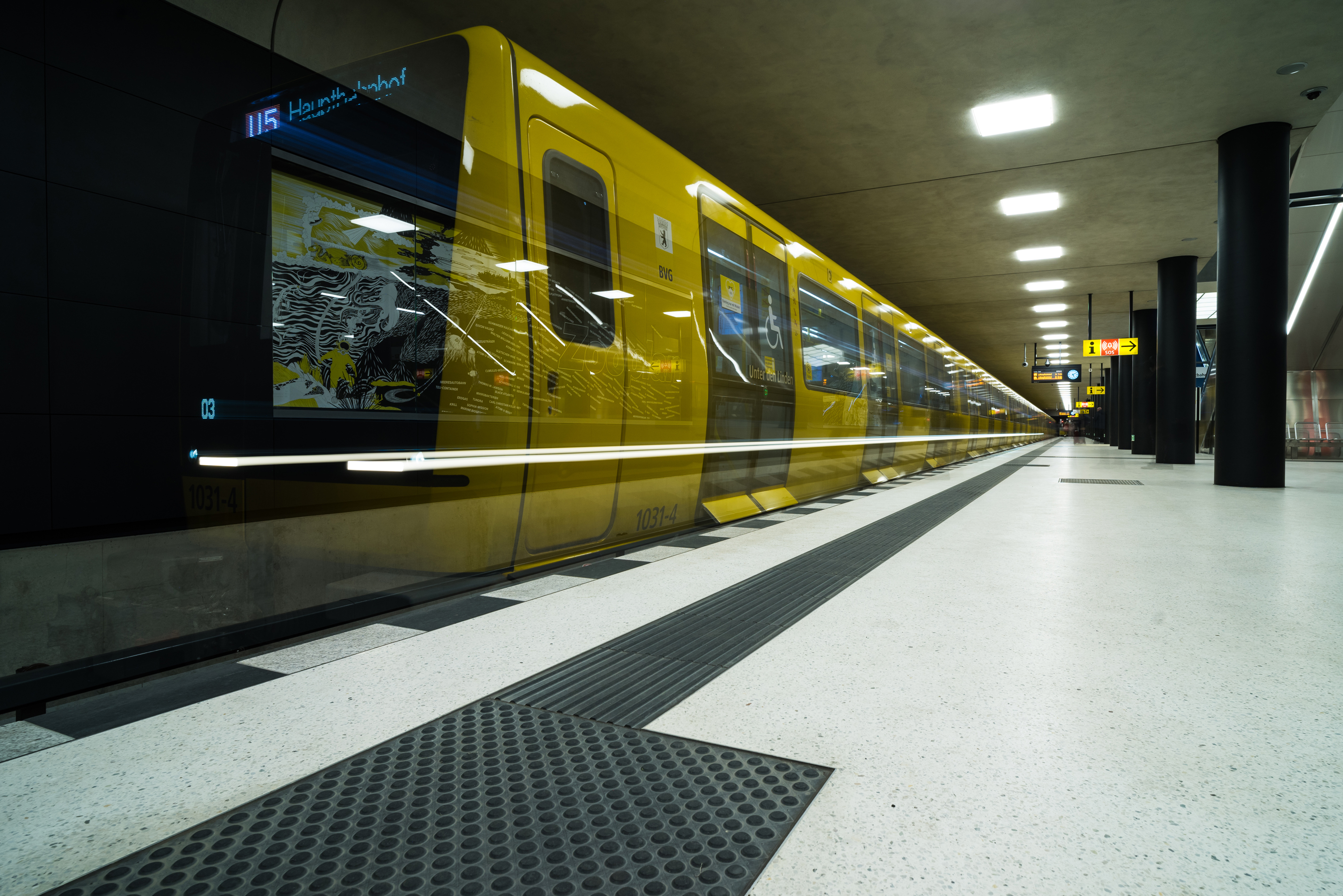 Bei einer längeren Belichtungszeit (z.B. ND8 + ND64 = 128s) - dann hätte man durch die Öffnungsbewegung der Türen und Passagierfluss eher ein unschöneres Bild erhalten.