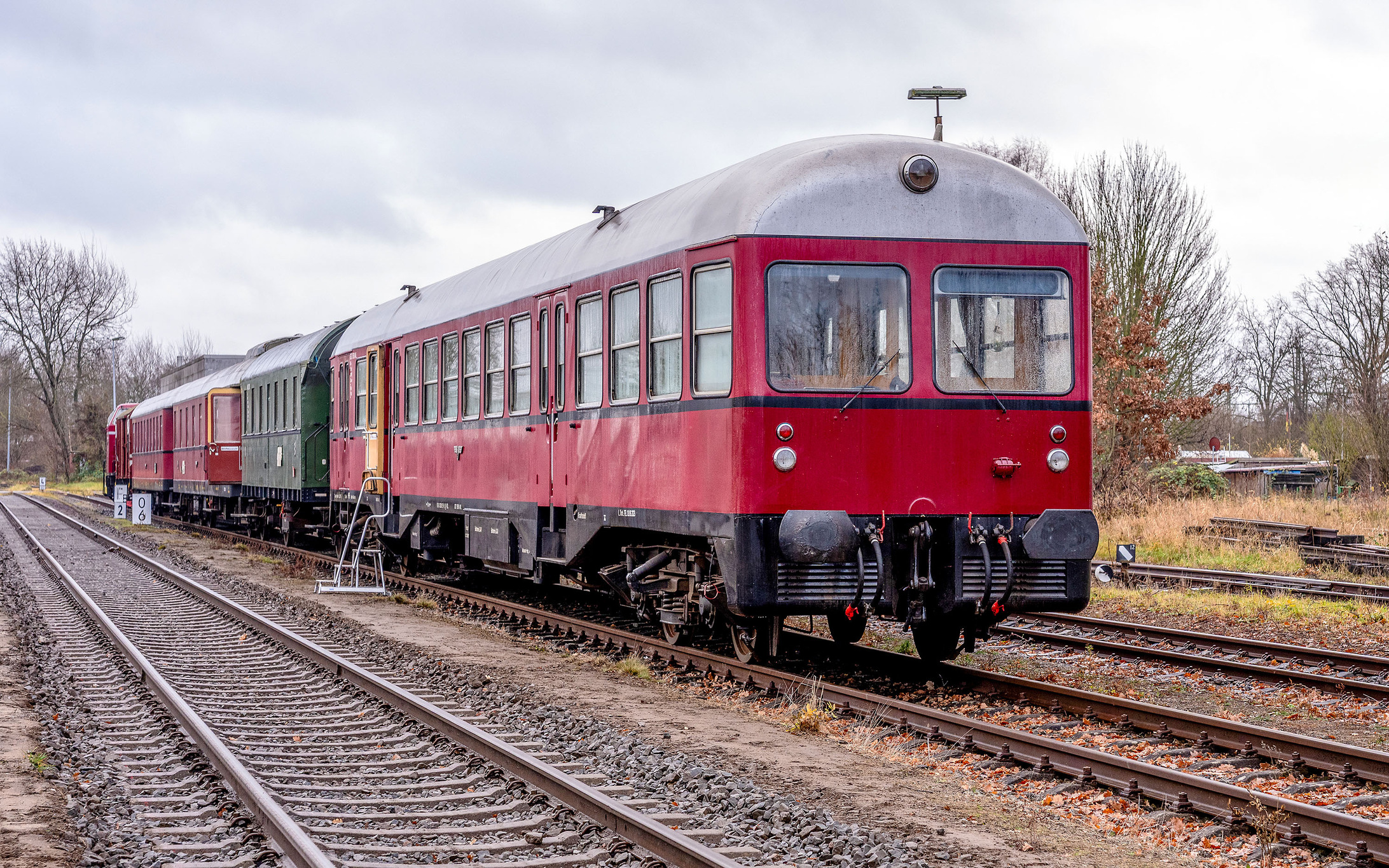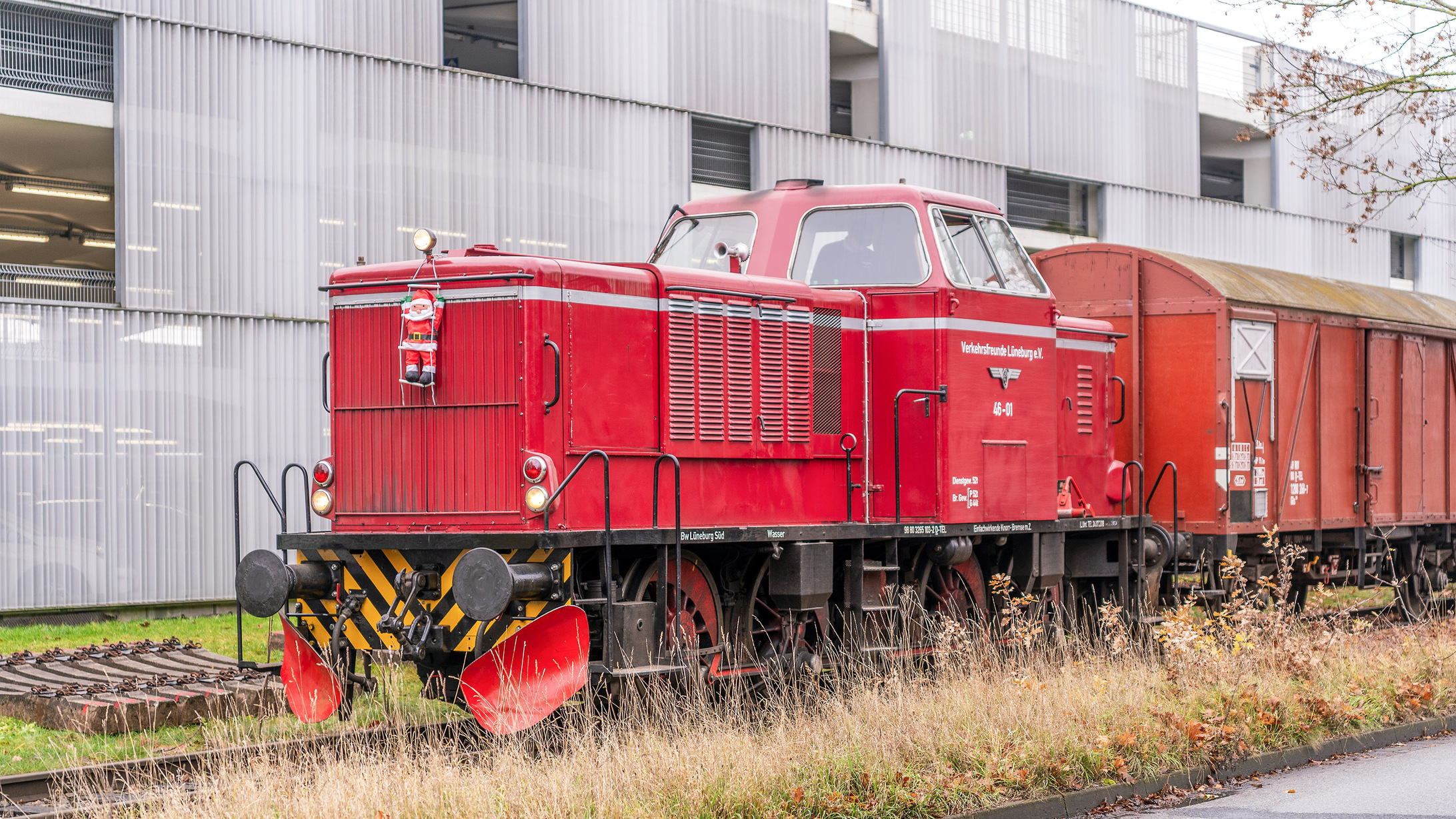 Trisha Geschrieben vor 1 Stunde Share #651  Geschrieben vor 1 Stunde Werbung (verschwindet nach Registrierung) Der Triebwagen wurde während des Betriebs im Stumpfgleis zwischen Abstellanlage und Prellbock als solcher genutzt und fuhr sonst als normaler Personenwagen ohne Übergang zu den übrigen Waggons mit. Zum Einsatz kam die Diesellokomotive 46-01, welche in Marschacht für die Rückfahrt umgesetzt wurde. Hierdurch stand sie nach der Rückfahrt und Ankunft in Winsen aber so, dass sie sich nur aus der Nähe direkt von vorn aufnehmen ließ. Die folgende Aufnahme entstand im Gegensatz zu allen sonstigen Bildern dieser Serie daher nach einem Spaziergang in der Stadt kurz vor der Abfahrt des Nachmittagszuges.  Hallo, lieber Besucher! Als Mitglied würdest du hier ein Bild sehen… Hier einfach kostenlos anmelden – Wir freuen uns immer über neue Mitglieder! Diesellokomotive 46-01 der Verkehrsfreunde Lüneburg vor Abfahrt des Nikolauszuges in Winsen A7III, Sigma 28-70mm F2.8 DG DN, 70mm, f/2.8, 1/80s, ISO 200  Link zum Beitrag Auf anderen Seiten teilen More sharing options...