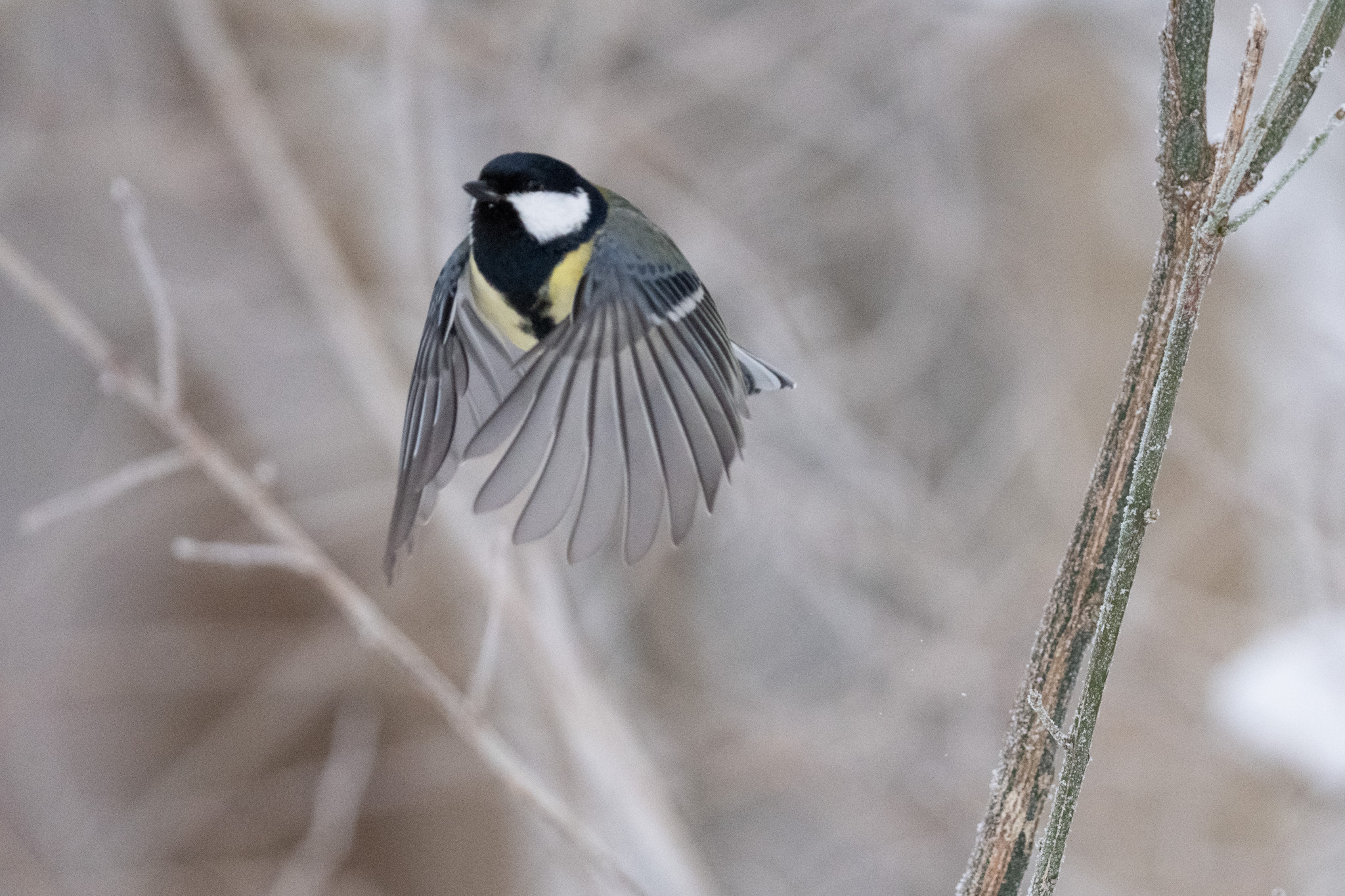 Man kann mit der Kamera schon tolle Bilder machen, aber ich bleibe bei meiner Einschätzung, dass die Motiverkennung für Vögel auf Ästen besser sein könnte. Hier ist ein Beispiel für einen relativ deutlich erkennbaren Vogel, den der Autofokus zwar erwischt hat, aber er hatte doch große Mühe. Kurz erkannt, dann ganz schnell wieder weggesprungen. In der Serie waren ein paar scharfe dabei, aber auch viele unscharfe. Ich gebe zu, das mit den Ästen ist knifflig und vielleicht sind meine Einstellungen auch zu sprunghaft. Ich hatte hier einen XS-Tracking-Spot.