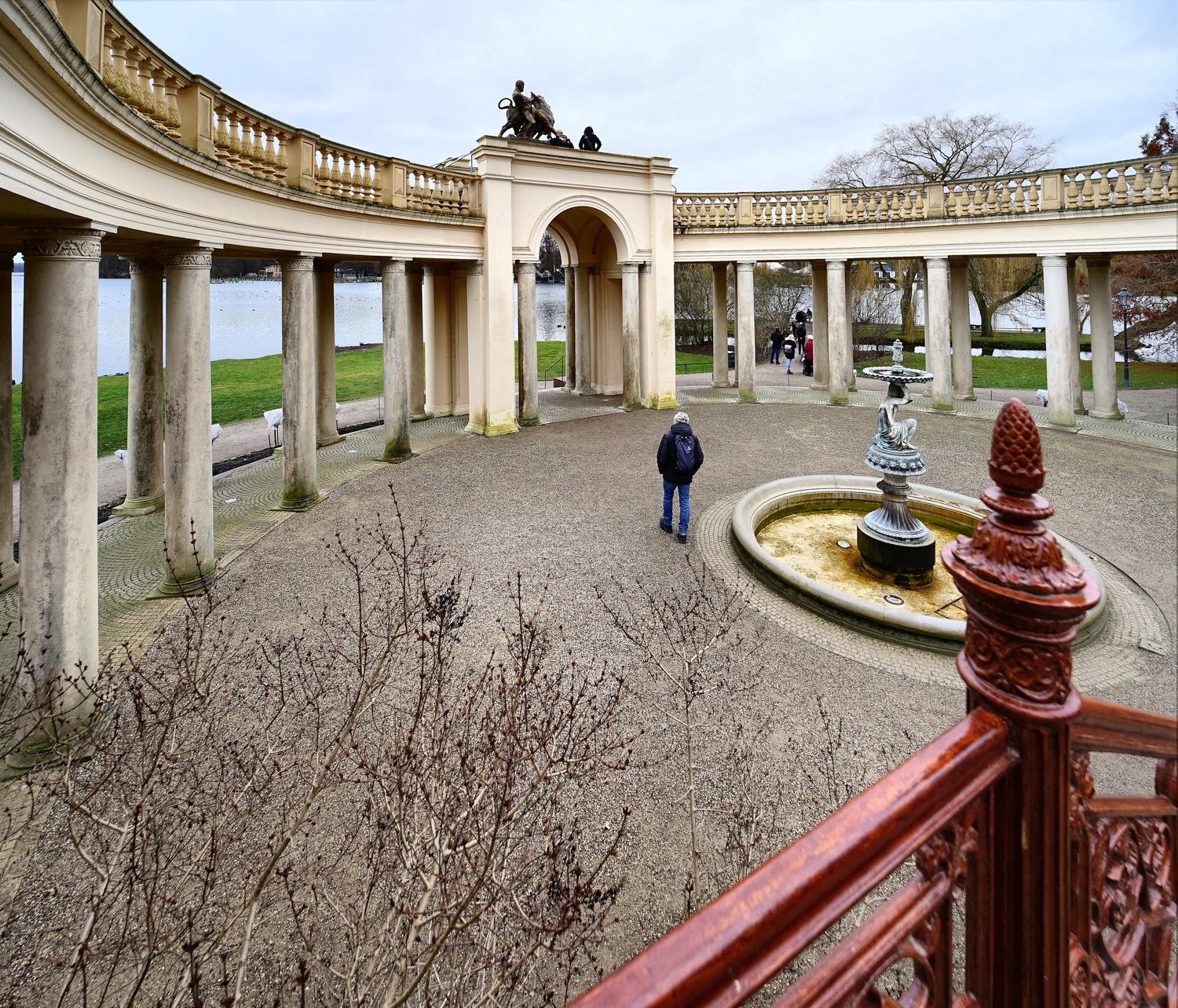 Wenn man ohne stürzende Linien Gebäude aufnehmen will, muss mann Glück mit dem Vordergrund haben oder ausschneiden. Hier ein Ausschnitt, ca. 60% des Fotos, es ging mir um die CA an den verschiedenen Kanten und die Verzeichnung. CA sind nur sehr schwach ausgeprägt, die Verzerrung müsste korrigiert werden.